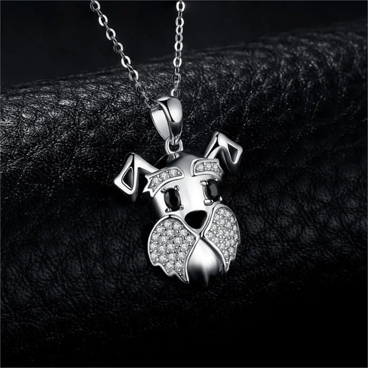 Schnauzer Dog 925 Sterling Silver Natural Black Spinel Pendant Necklace