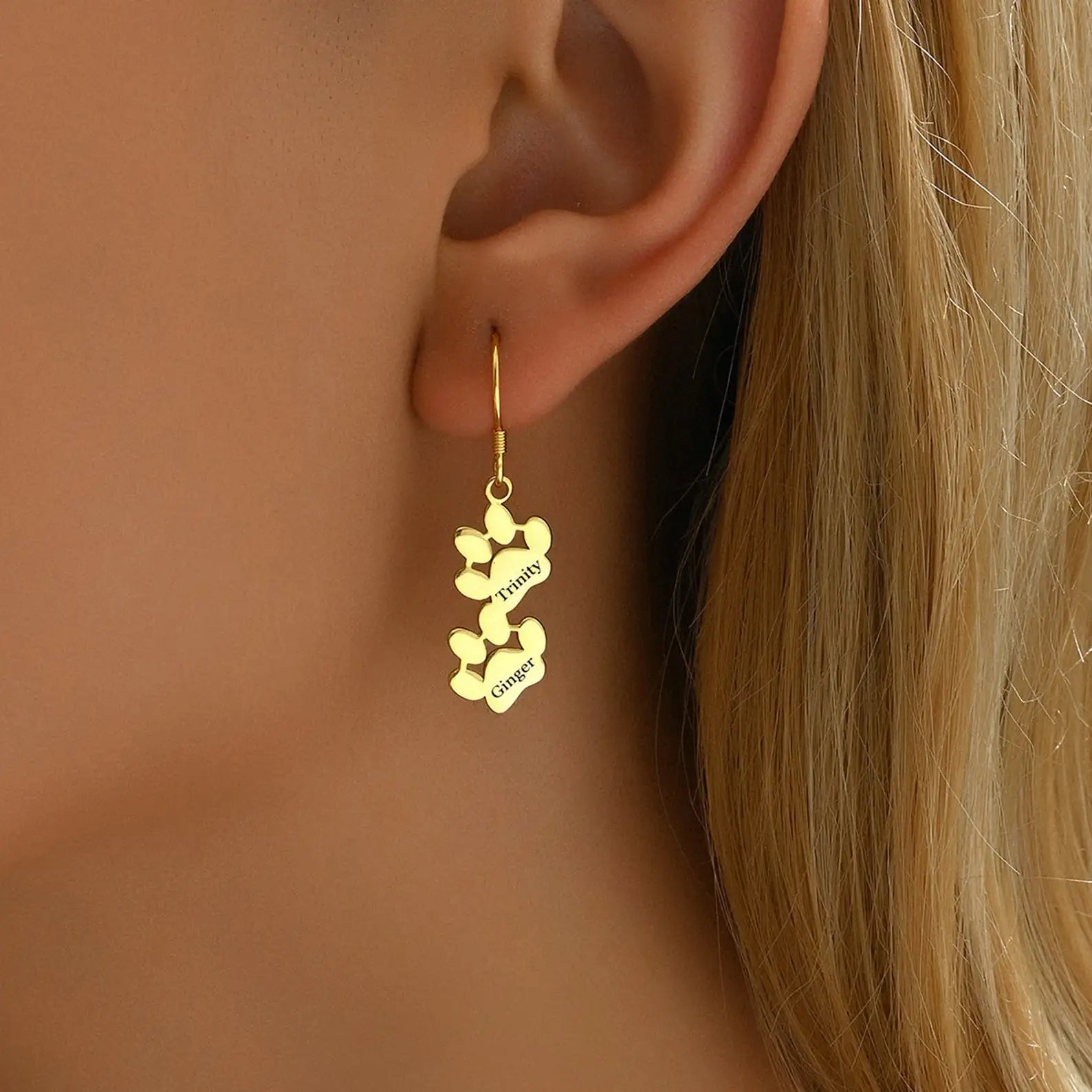 Tiny Paw Engraved Name Earrings